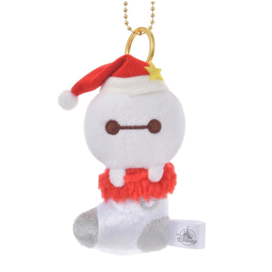 Baymax Weihnachtsdesign. Handflächengroßer Plüsch-Schlüsselanhänger. Baymax schaut aus einer Socke im Charakterdesign hervor, sehr niedliches Design....