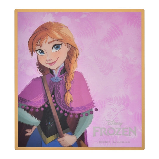 Kleine farbige Karte aus klarem Material mit einem Aufdruck von Anna aus "Die Eiskönigin". Die...