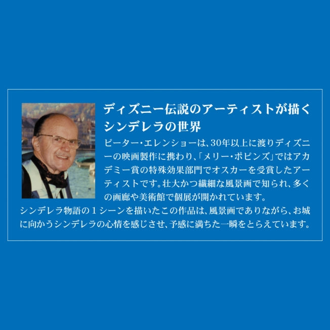 Special Art Collection / The world of Cinderella painted by legendary Disney artists! "Peter Ellenshaw", who painted this work, was involved in the production of films at Disney for over 30 years and received the Oscar in the visual effects category for his work on "Mary Poppins". This work called "Glass Castle" is one of his most popular works of art. To preserve the touch of this art, the puzzle has been given a textured surface and processed in a "canvas style", similar to a painting. After completing the puzzle, it can be hung in a separate panel, sold separately, and becomes a beautiful decoration for any room! Suitable panels: "Disney Art Figure Panel 1000 Pieces", "Disney Wooden Panel 1000 Pieces", "Disney Safety Panel 1000 Pieces".