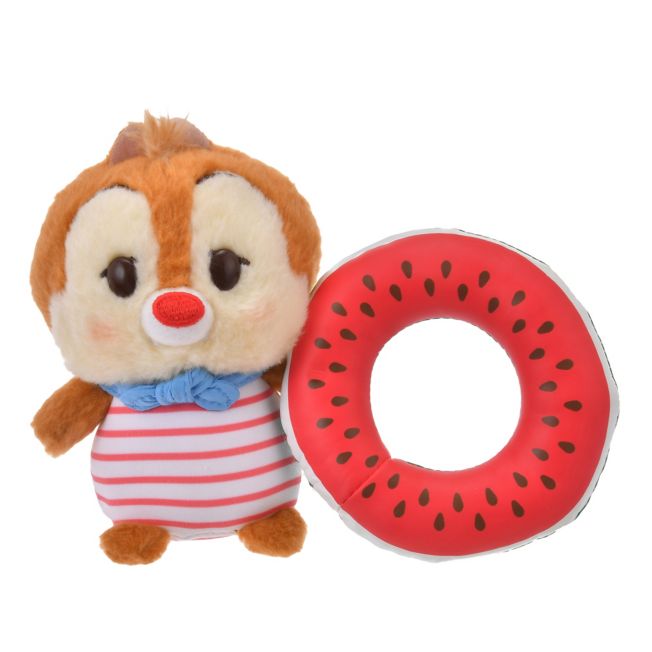 Perfect for summer, the "Uru Pocha-chan" is available. It's the summer version of Dale in swimwear. The Disney Store "Uru Pocha-chan" plush series is now also available for summer! She wears a swimsuit with a nautical pattern and has an original buoyancy aid. She strikes a cute pose, as if she's raising her hands and frolicking with the buoyancy aid wrapped around her body. The buoyancy aid can also be removed for a cute pose. The summer version of "Uru Pocha-chan" retains the fluffy feel but has a softer tummy area. The summer version of "Uru Pocha-chan" will make the hot summer more bearable.