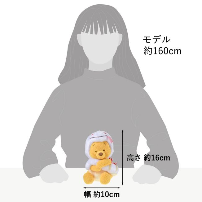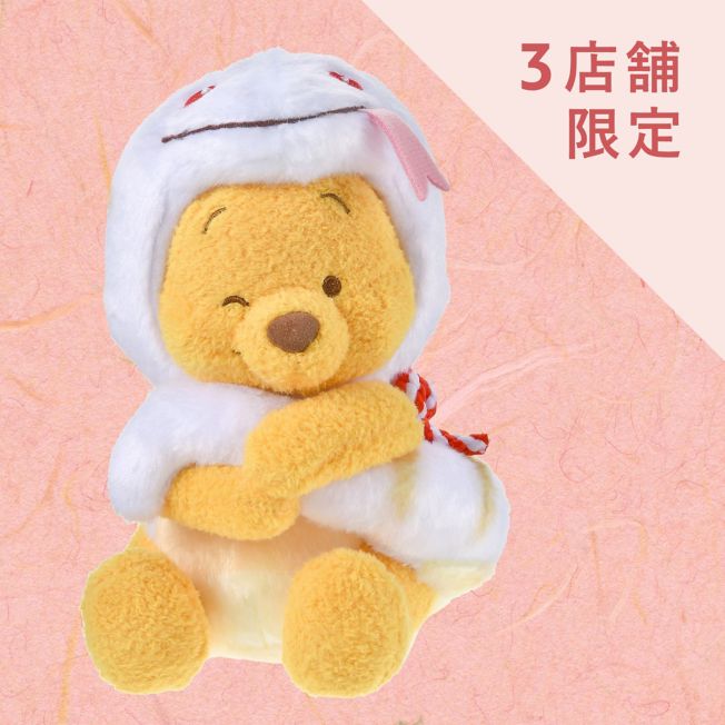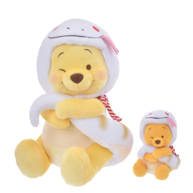 Popular zodiac series of Winnie the Pooh & Friends, exclusive to Disney Flagship Tokyo, Tokyo Disney Resort Store and Disney Store.jp. Winnie the Pooh plush doll in a white snake costume in a handy small size. Winnie the Pooh wearing the costume of the year 2025. The pose of him hugging the tail of the costume tightly is adorable. The cute hood with the snake's tongue pattern can also be removed. The white costume is elegant and the red and white tie around the neck adds a festive atmosphere that suits the New Year. Decorate your favorite place in the room and enjoy.