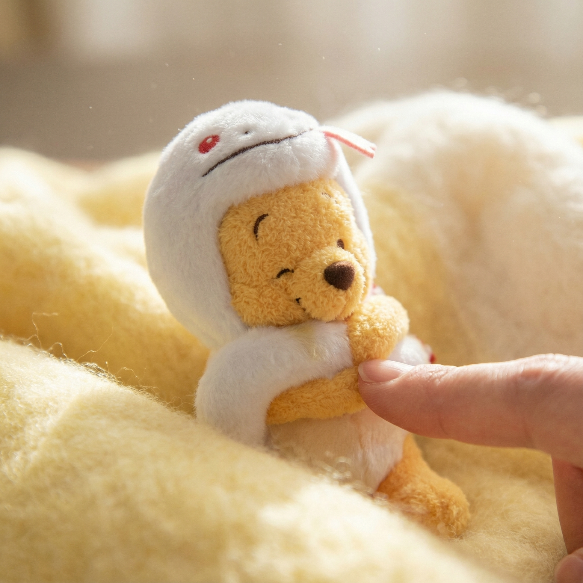 Popular zodiac series of Winnie the Pooh & Friends, available exclusively at Disney Flagship Tokyo, Tokyo Disney Resort Store, and Disney Store.jp. A plush keychain of Winnie the Pooh wearing a white costume with a snake motif corresponding to the year 2025. The pose of him holding the tail of the costume is adorable. The hood with the snake's tongue motif is also cute. The hood is detachable. The white costume is elegant, and the red and white ribbon around the neck adds a festive atmosphere suitable for the New Year. Decorate your bag or purse and enjoy!