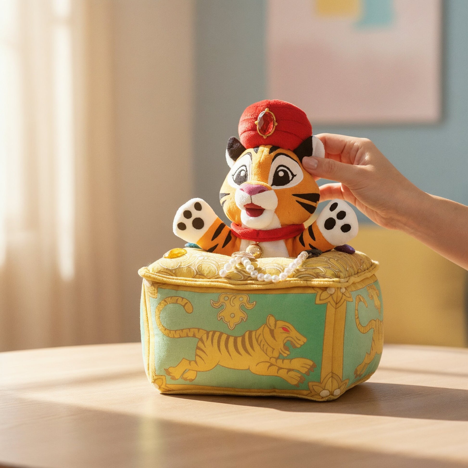A hand puppet of Chandu, a character you can only meet at Sinbad's Storybook Voyage at Tokyo DisneySea. You can take Chandu out of the treasure chest and move him by placing your hand underneath. The jingle on his collar is the highlight! His sudden appearance is very impressive. When you see the cute Chandu, you'll automatically smile.