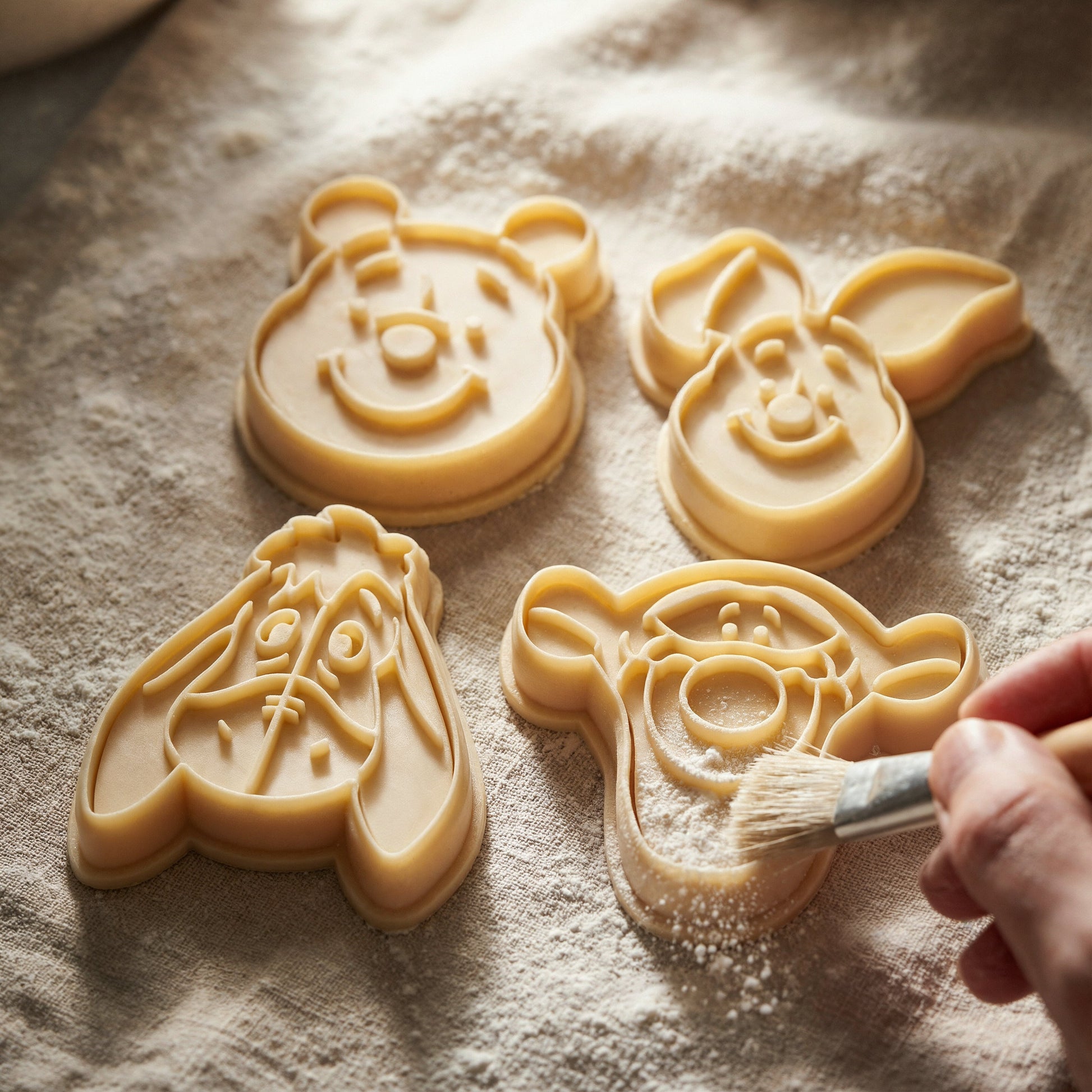 This is a set of cookie cutters and stamps. You can use the cutter to cut out the outlines, and the stamp lets you easily add faces or cute patterns.