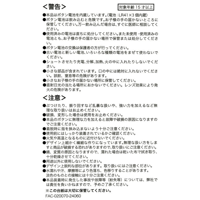 * This product contains a button cell (battery: 3 x LR41 included)