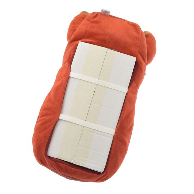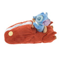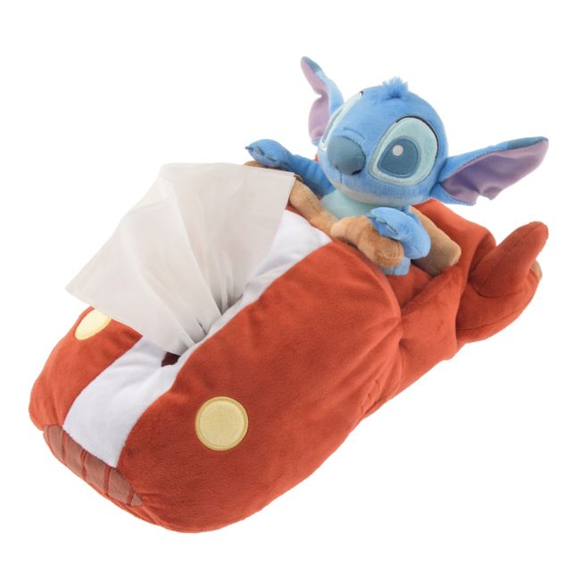 Stitch tissue box cover. The design depicts Stitch sitting on a hovercraft. He sits in the cockpit, staring straight ahead, seemingly determining the hovercraft's course. It's such a cute image that you'll fall in love with it instantly. The white line area of the hovercraft serves as a tissue dispensing point. Transform your existing tissue box with this cover and enjoy the change in ambiance.