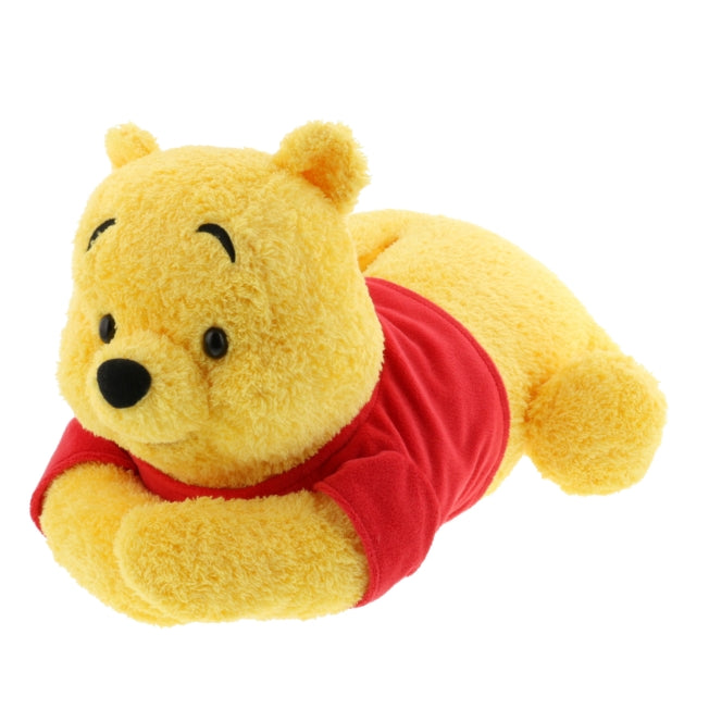 A tissue box cover in the shape of Pooh that looks like a stuffed animal. It has a size that looks good in the room and offers a fluffy and soft feel that is soothing. It is easy to put the cover over a box of tissues. The tissues can be taken out from the back. Another advantage is that it comes with a ribbon and can be hung on the wall in the room. Feel close to Pooh at all times.