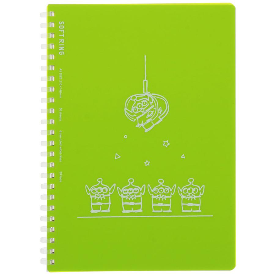 "Mini Notebook Ring Notebook" Toy Story Alien Disney Character Ring Notebook A5 Soft Ring Notebook 2021SS Soft ring design with squishy rings that won't bother you when they touch your hands. A cute new stationery series featuring popular Disney characters. This is an [A5 Soft Ring Notebook] with squishy rings that won't bother you when you touch it with your hands. The D-shaped ring shape makes it easy to write to the edge of the page without worrying about the rings, making it convenient and not bulky. When you finish writing and want to dispose of the notebook, you can easily separate it by cutting off the rings. There are many cute stationery items, so please collect your favorites. Size: Approx. 148 x 210mm (50 sheets) Manufacturer: KOKUYO [Made in Japan] A5 Notebook/Mini Notebook/Memo/Character Stationery/Gift