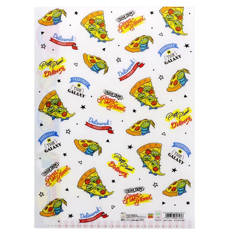 Es handelt sich um eine Klarsichtmappe, auf der die Charaktere aus "Toy Story" abgebildet sind.