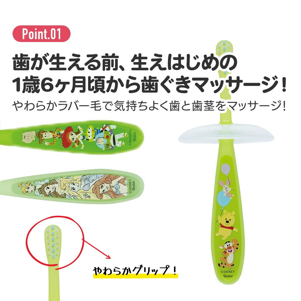 Dank der zwei unterschiedlich bestückten Bürstenköpfe wird Plaque sanft und effektiv entfernt. Der ergonomisch geformte, weiche Griff liegt perfekt in kleinen Kinderhänden. Eine integrierte Sicherheitsplatte verhindert ein zu tiefes Einführen in den Mund und sorgt so für extra Sicherheit beim Zähneputzen.
