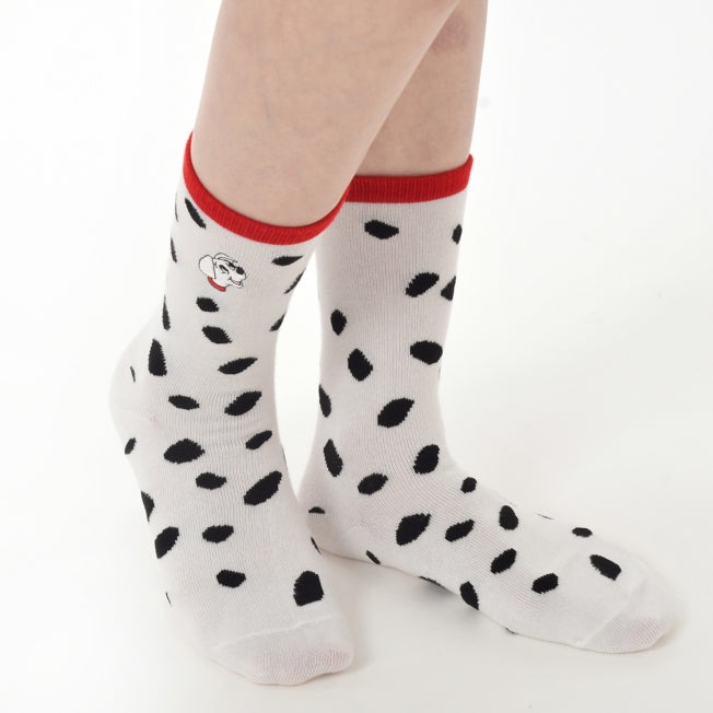 Empfohlen für den täglichen Gebrauch. Socken mit dem Design von Welpen aus "101 Dalmatiner". Dalmatiner-Muster mit gesticktem Charaktergesicht. Ein einfaches, aber auffälliges Design. Die rote Bündchenfarbe passt zum Halsband des Welpen und setzt einen Akzent. Genießen Sie Ihr individuelles modisches Schuhwerk♪