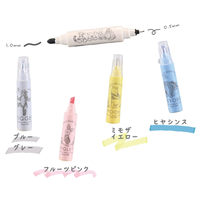 Ein Set mit vier gedämpften Farbmarkern und einem Twin Pen, mit dem Sie fett und dünn schreiben können! Erstellen Sie Ihr eigenes Original, indem Sie die Art und Weise ändern, wie sie verbunden sind.