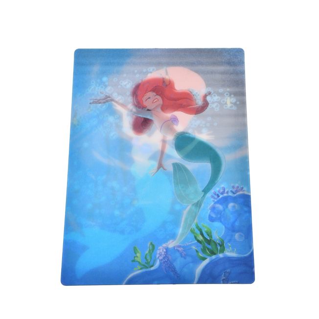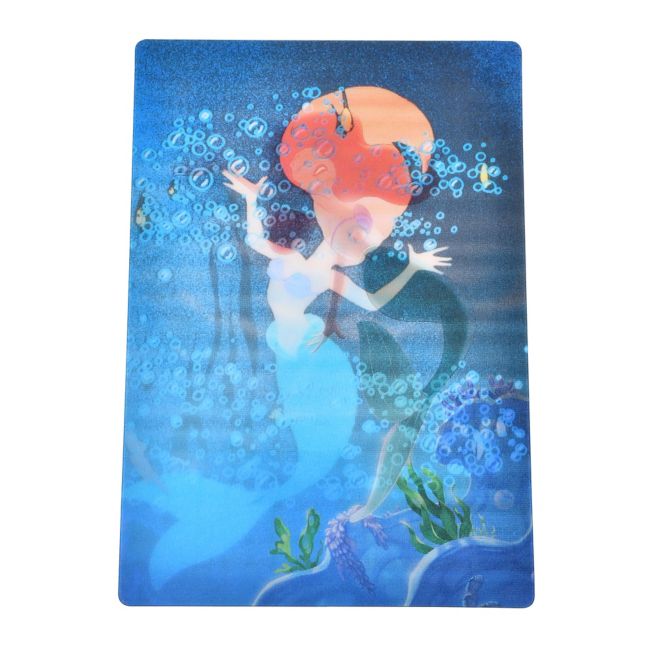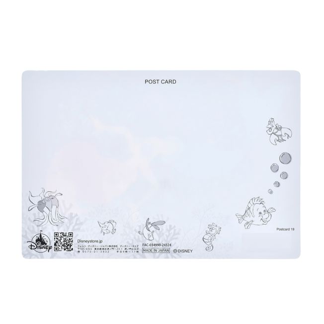 Postkarte mit einem linsenförmigen Winkeldesign, das je nach Blickwinkel anders aussieht. Das Design von Ariel und Sebastian aus "Die kleine Meerjungfrau" ist zu sehen. Wenn Sie die Postkarte nach oben und unten neigen, ändert sich das Bild. Beachten Sie auch das charmante Gesicht von Sebastian. Das Design der Adressseite mit Flunder ist ebenfalls ein Highlight. Da es aus Papier besteht, können Sie eine Nachricht mit Ihrem Lieblingsstift hinzufügen.