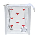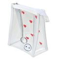 Durchsichtiges Design, das Lieblingsartikel von außen sichtbar macht. Hier ist eine Tasche mit Baymax-Druck. Die charakteristische weiße Paspelierung verleiht der Tasche Akzente. Hergestellt aus klarem PVC-Material, so dass der Inhalt sichtbar ist und man auf einen Blick sehen kann, was sich darin befindet. Sie können Kosmetikprodukte und Lieblingsaccessoires hineinstecken und sie niedlich anpassen. Mit einem Karabiner zum Anbringen an der Tasche und zum Tragen von Schlüsseln oder Schlüsselanhängern.
