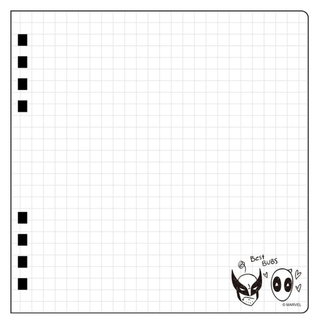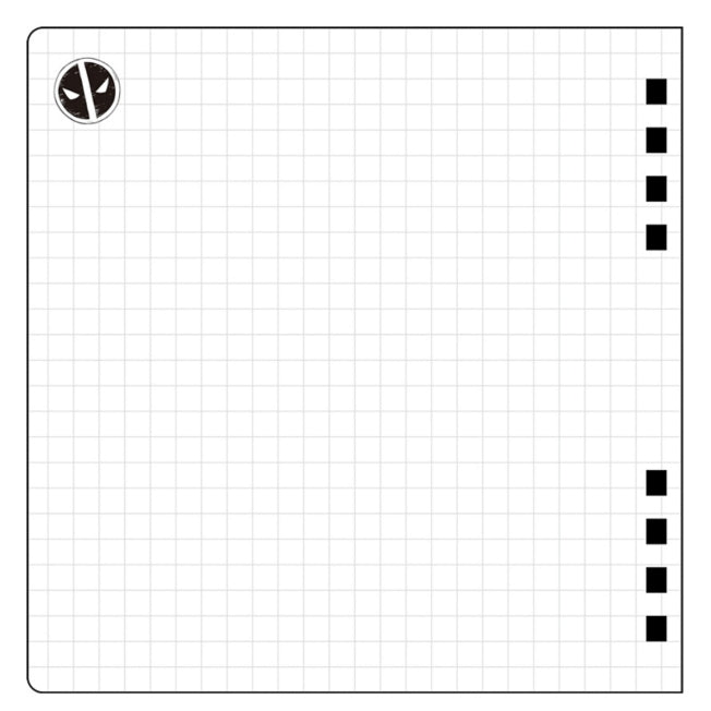 Dies ist ein quadratisches Notizbuch mit „Deadpool & Wolverine“. Mit Gummiband und 70 Seiten.