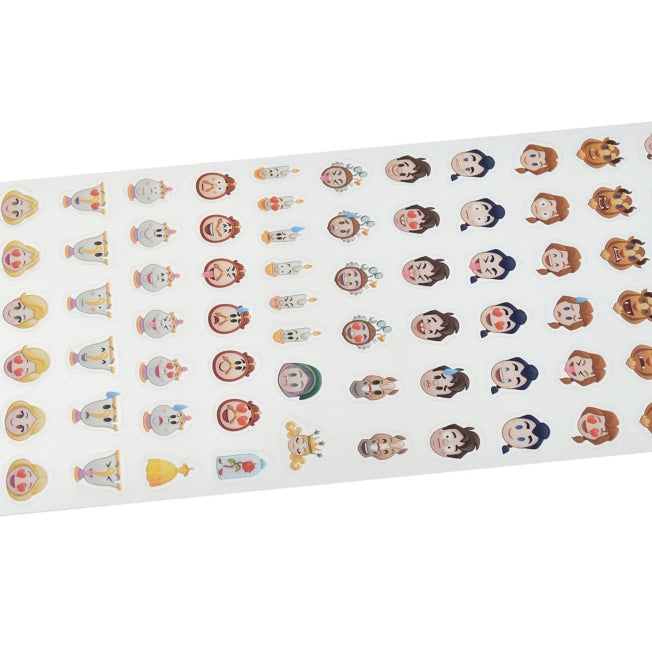 Mini-Aufkleber mit Icon-Design von "Die Schöne und das Biest" Charakteren. Niedliche Sticker mit verschiedenen Gesichts-Icons. Enthält Disney-Prinzessin Belle, Biest, Mrs. Potts und Chip, sowie seltene Charaktere wie Gaston, LeFou, Maurice (Belles Vater), und die drei Schwestern Clorinda, Laurette und Paulette. Hintergrund ist transparent. Ideal zum Dekorieren von Kalendern, Terminplanern, Briefen und mehr. Größe: Verpackung ca. 20x9.3x0.1 cm, Bogen ca. 17.5x9 cm. Gewicht: ca. 8 g. Empfohlen ab 6 Jahren. Bitte lesen Sie die Sicherheitshinweise vor Gebrauch sorgfältig durch.