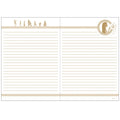 Dies ist ein Notizbuch mit einem geprägten Design auf dem Cover.