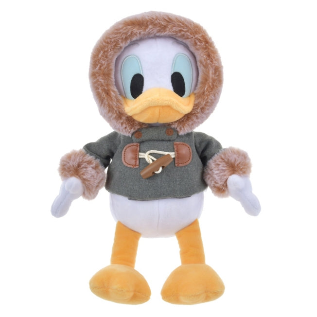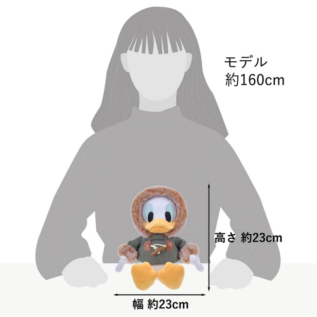 Die "DUFFEL COLLECTION" Serie von Plüschtieren, die warme Oberbekleidung tragen. Donald Duck Plüschtier. Donald sieht in seinem einfarbigen, schicken Dufflecoat toll aus. Die Kapuze und die Ärmelbündchen sind mit Kunstpelz verziert, was nicht nur warm hält, sondern auch ein gemütliches Gefühl vermittelt. Der Mantel ist mit echten Knebelknöpfen und einem Innenfutter ausgestattet. Das Material ist auch sehr robust. Wenn Sie es im Raum platzieren, verleiht es sofort eine saisonale Atmosphäre. Bitte platzieren Sie es an einem Ort Ihrer Wahl und genießen Sie es.