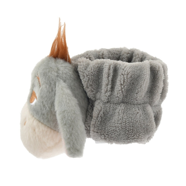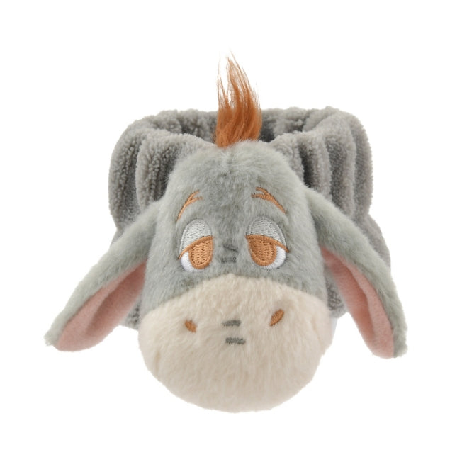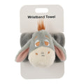 Ein Armband aus Frottee-Stoff für die Handgelenke mit dem Design von Eeyore. Die runde Form und das flauschige Gefühl machen dieses Armband unwiderstehlich. Es absorbiert Wasser beim Waschen des Gesichts und verhindert, dass der Arm nass wird. Da es für eine Hand gedacht ist, kaufen Sie am besten zwei Stück und verwenden Sie sie mit beiden Händen. Es wird nicht nur zu Hause für die Hautpflege verwendet, sondern ist auch praktisch auf Reisen oder bei Outdoor-Aktivitäten. Es ist auch ein auffälliges Accessoire für das Handgelenk, wenn Sie in einen Themenpark gehen.