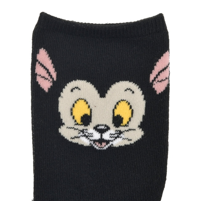 Socken mit dem Design von Figaro, der schwarzen Katze aus "Pinocchio". Das Gesicht des Charakters wird auf den schwarzen Socken nachgebildet. Ein süßes Accessoire, das einen einzigartigen Akzent setzt. Diese modischen Socken eignen sich nicht nur für den täglichen Gebrauch, sondern auch perfekt für lustige Anlässe wie Freizeitparks und Themenparks.