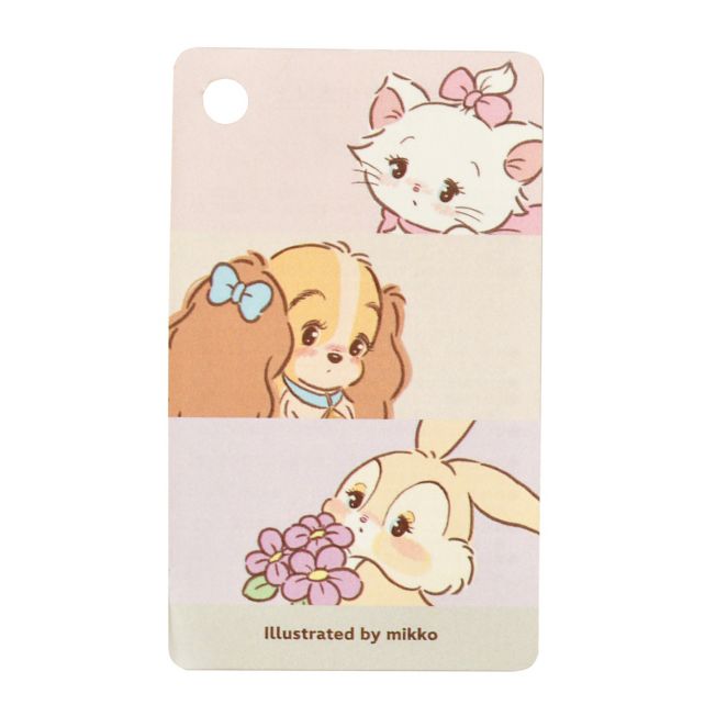 Niedliche Disney-Artikel, entworfen von Illustrator mikko. Es handelt sich um Eco-Taschen, die Marie aus "Aristocats", Lady aus "Susi und Strolch" und Miss Bunny aus "Bambi" darstellen. Die liebenswerten Disney-Tiercharaktere sind in einem zarten, flauschigen und niedlichen Stil dargestellt. Kleine Illustrationen von Schleifen, Herzen, Blumen usw. umgeben die Charaktere. Ein süßes Accessoire, das voller "Niedlichkeit" steckt. Die kleine Taschengröße ist auch sehr niedlich. Einfach zusammenfalten und in Ihrer Handtasche verstauen.