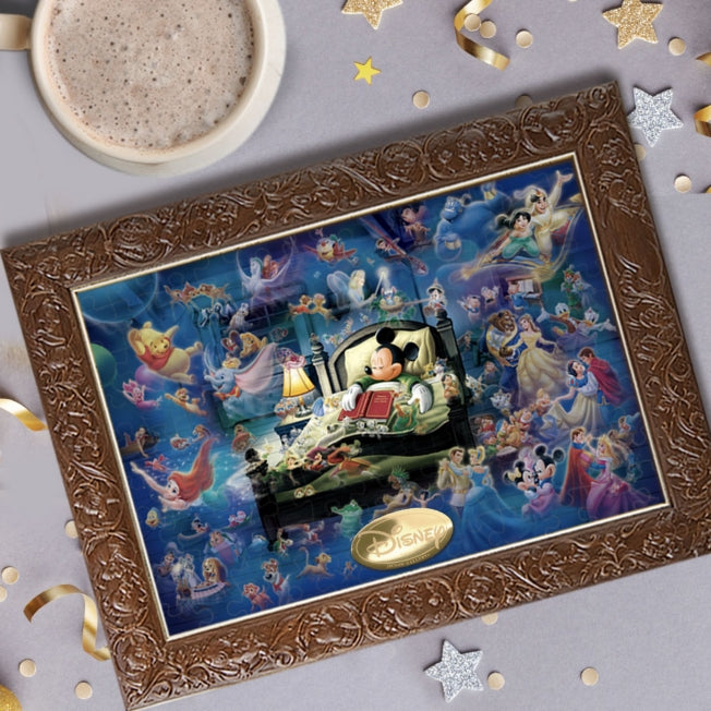 Mickey läuft in seinen Träumen durch die Welt von Disney! Da es sich um ein leuchtendes Puzzle handelt, das im Dunkeln leuchtet, können Sie nach dem Zusammenbau in einem separaten Panel, das separat erhältlich ist, aufhängen und die fantastische Traumwelt genießen, die im Mondlicht zum Vorschein kommt. Passendes Panel: "Disney Exclusive Art Figure Panel 108 Pieces" "Disney Exclusive 108 Piece Panel"