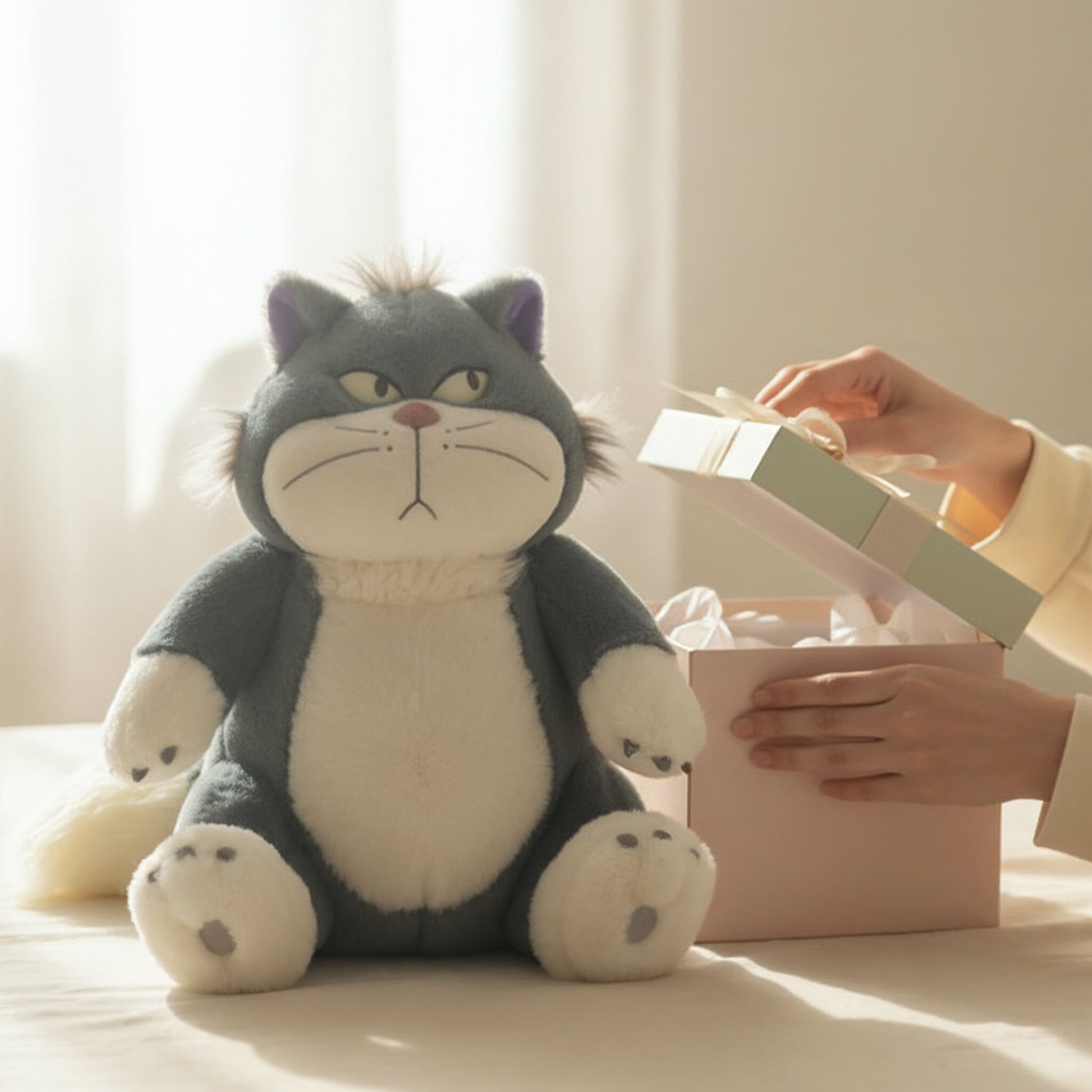 Ein flauschiger Wärmflaschenbezug mit dem Design von Lucifer aus "Cinderella". Das verärgerte Gesicht verleiht ihm einen liebenswerten Charme. Der flauschige Körper und der beeindruckende Schwanz des Bezugs sind ein echter Hingucker! Ein warmes Accessoire, das auch zu einem Akzent im Raum wird. Füllen Sie die Wärmflasche mit heißem Wasser und setzen Sie den Bezug mit dem Charakterdesign richtig auf. Wenn Sie es auf Ihre Knie legen, spüren Sie die angenehme Wärme auf Ihrem Körper. Es wird empfohlen, es mit der Lucifer-Decke (separat erhältlich) zu verwenden. Ideal für die Zeit zu Hause, wie z.B. Büroarbeit, und auch als Begleiter für Outdoor-Aktivitäten wie Camping. Bitte beachten Sie, dass das Veröffentlichungsdatum und die Verkaufsstellen ohne Vorankündigung geändert werden können. Dieses Produkt enthält keine "Lucifer Wear Blanket" und muss separat erworben werden.