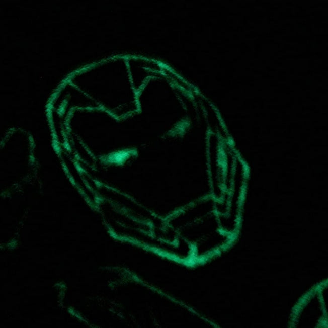 Dies ist ein Handtuch, das mit dem Marvel-Charakter Iron Man im Neonstil gestaltet ist. Es verwendet Leuchtfarben-Druck, so dass Iron Man im Dunkeln leuchtet!