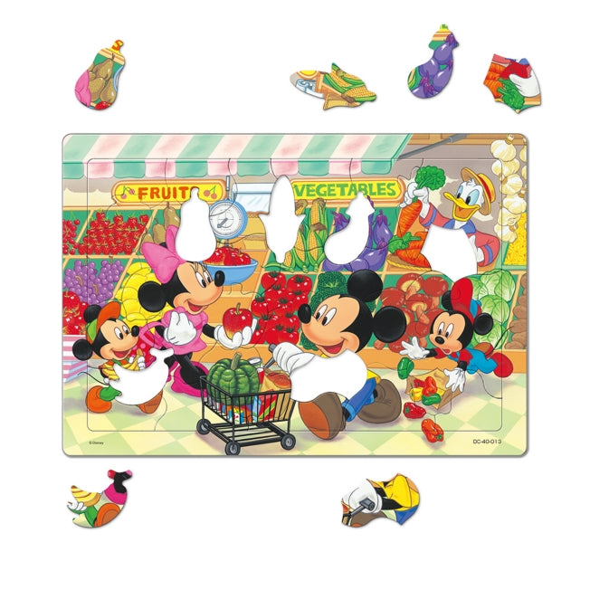 Puzzles sind die Könige der Bildungsspielzeuge! "Kinderpuzzle" fördert die Intelligenz und das reiche Herz Ihres Kindes! Ein lustiges Bild, auf dem Mickey und Minnie im Supermarkt einkaufen. Während des lustigen Spielens werden Intuition für Formen, Farbsensibilität und Geschicklichkeit der Hände entwickelt. Es ist eine lustige Serie, in der Silhouetten von Gemüse und Obst in die Teile eingefügt sind. Altersgruppe: 3-6 Jahre
