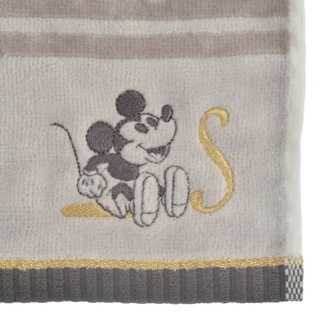 Stickdesign mit dem Buchstaben "S" und Mickey Mouse. Ein stilvolles Mini-Handtuch mit goldenem Glanz. Das "S" von "Smile" und das gestickte lächelnde Charakter sind platziert. Das Glitzerfaden auf dem Handtuchstoff verleiht ihm eine festliche Note. Initialartikel sind auch als Geschenk zu empfehlen. Da es aus Baumwolle besteht, ist es auch sehr angenehm zu benutzen.