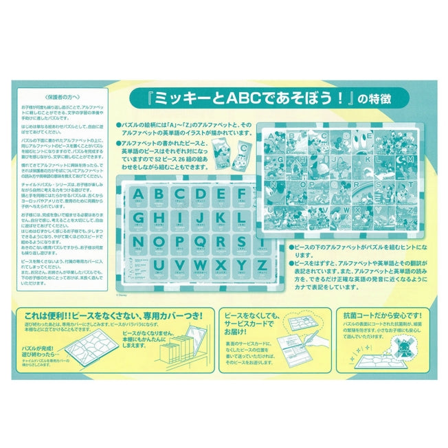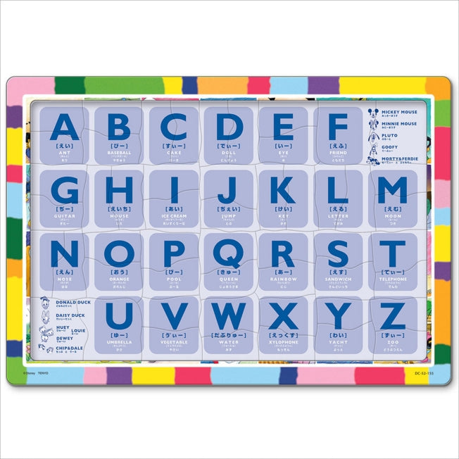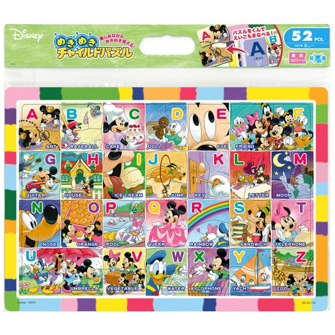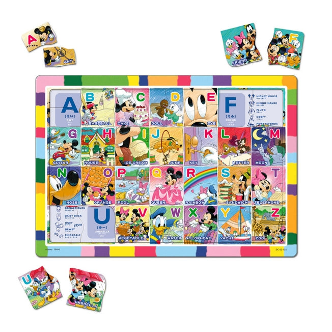Puzzles sind die Könige der Bildungsspielzeuge! "Kinderpuzzle" fördert die Intelligenz und das reiche Herz Ihres Kindes! Während sie Spaß haben, werden intuitive Fähigkeiten für Formen, Farbempfindlichkeit und Geschicklichkeit entwickelt. Mit den Bildern von Mickey und seinen Freunden macht das Spielen Spaß und Ihr Kind kann auf natürliche Weise Englisch und das Alphabet kennenlernen. Indem sie nach den Puzzleteilen mit Buchstaben und den Puzzleteilen mit englischen Wörtern suchen und sie zusammenfügen, können sie das Puzzle leicht zusammensetzen. Da die Buchstaben auf den Teilen mit den darunter geschriebenen Buchstaben übereinstimmen, kann das Betrachten dieser Buchstaben auch ein Hinweis zum Puzzeln sein, so dass Ihr Kind beim Spaß haben auch das Alphabet lernen kann. Altersgruppe: ab 3 Jahren