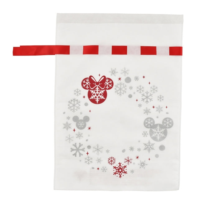 Geschenktüte (XL) mit Weihnachtsdesign, einfach zu verpacken, indem man das rote Band zuzieht. Weihnachtskranzdesign mit Micky und Minnie. Beutel aus Vliesstoff mit Zugband, um verschiedene Geschenke einfach zu verpacken. Verschiedene Größen erhältlich, bitte wählen Sie die passende Tasche aus.
