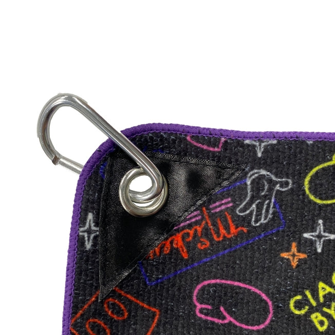 Ein auffälliges und farbenfrohes Mini-Hängetuch, das auf dem Golfplatzgrün auffällt. Da es aus Mikrofasermaterial besteht, kann es zum Reinigen von Golfbällen und für verschiedene Zwecke verwendet werden! Mit Karabiner, daher sehr praktisch♪ Es ist auch süß, wenn Sie es als Serie zusammenstellen!