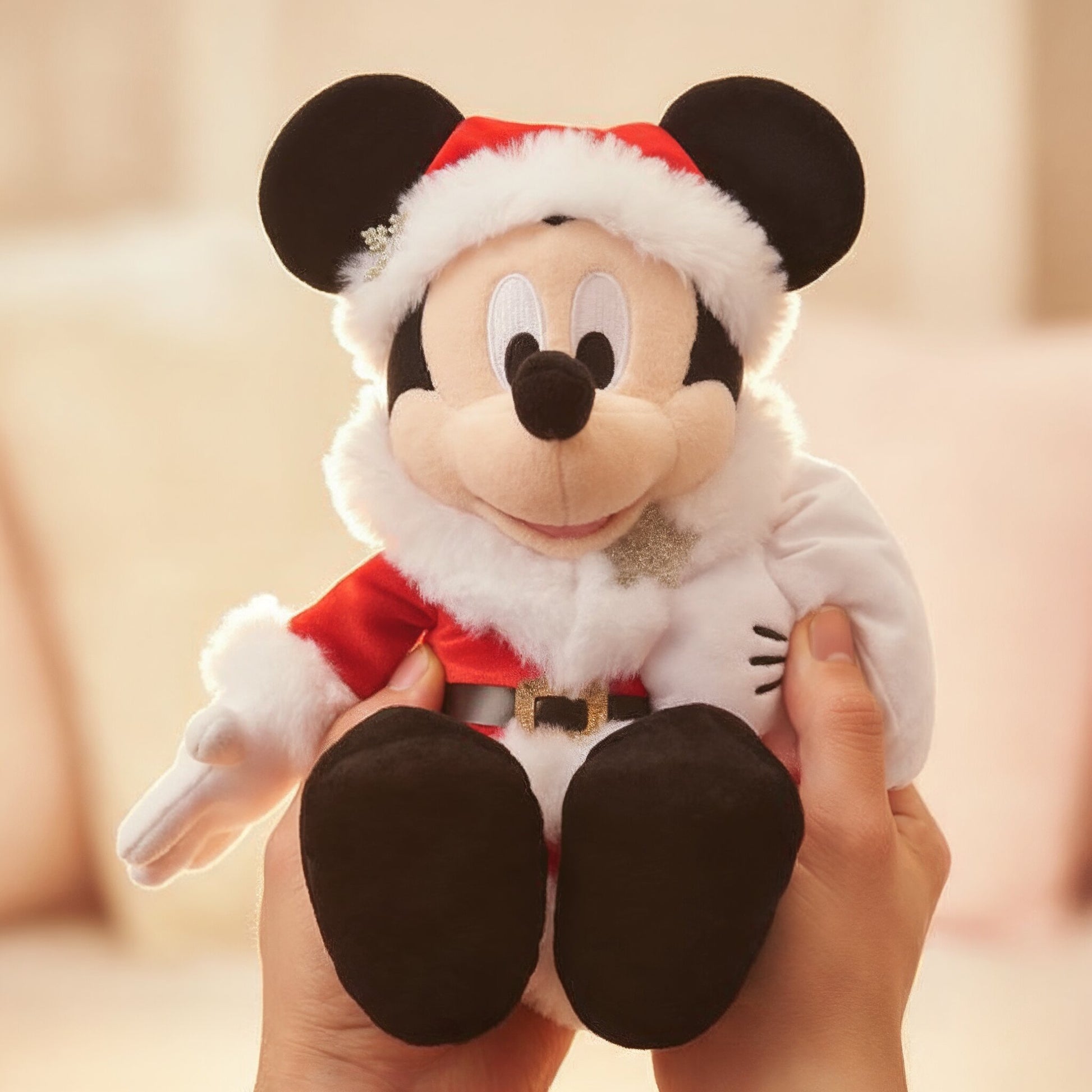 Niedliche Mickey Mouse Plüschpuppe im Weihnachts-Look. Mickey trägt ein glitzerndes silbernes Schneeflockenmotiv und eine weiße Tasche, die voller Geschenke zu sein scheint! Das flauschige, weiße Kunstfell im Santa Claus-Stil verleiht eine festliche Atmosphäre für die Feiertage. Die perfekte Größe, um in jedem Raum dekoriert zu werden. Noch festlicher, wenn es mit der Minnie Mouse Plüschpuppe aus derselben Serie (separat erhältlich) kombiniert wird. Es verspricht, die Zeit mit Ihren Lieben zu etwas Besonderem zu machen.