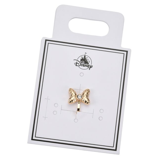 Einzelner Ohrring mit Minnie-Maus-Schleife. Goldfarbener Ohrring mit gepunkteter Schleife und Steinverzierung. Empfohlen für Erwachsene mit subtiler Charakterdarstellung. Da es sich um einen einzelnen Ohrring handelt, ist es auch möglich, unterschiedliche Designs links und rechts zu tragen. Kombinieren Sie es mit Ihren vorhandenen Accessoires und genießen Sie Ihren eigenen Stil.