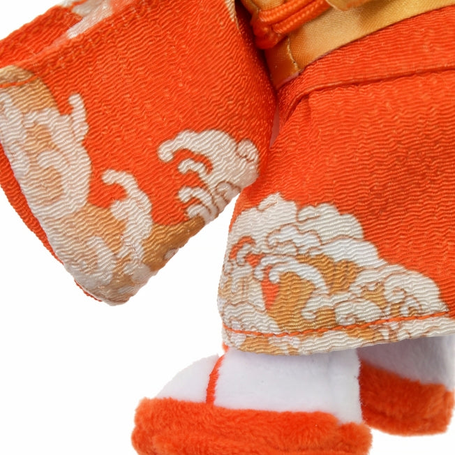 Ein Design, das japanische Tradition ausstrahlt. Ein Mini-Minnie-Plüsch-Schlüsselanhänger in Kimono-Kleidung ist erhältlich. Der luxuriöse Kimono, der den Fuji, große Wellen und Wolken imitiert, passt perfekt zum festlichen Anlass. Der stilvolle Gürtel und die Schleife zeigen auch bei kleinen Accessoires Sinn für japanische Mode. Wenn Sie es an Ihrer Tasche tragen, wird es definitiv auffallen. Dieses einzigartige japanische Produkt eignet sich auch hervorragend als Souvenir.