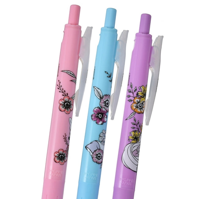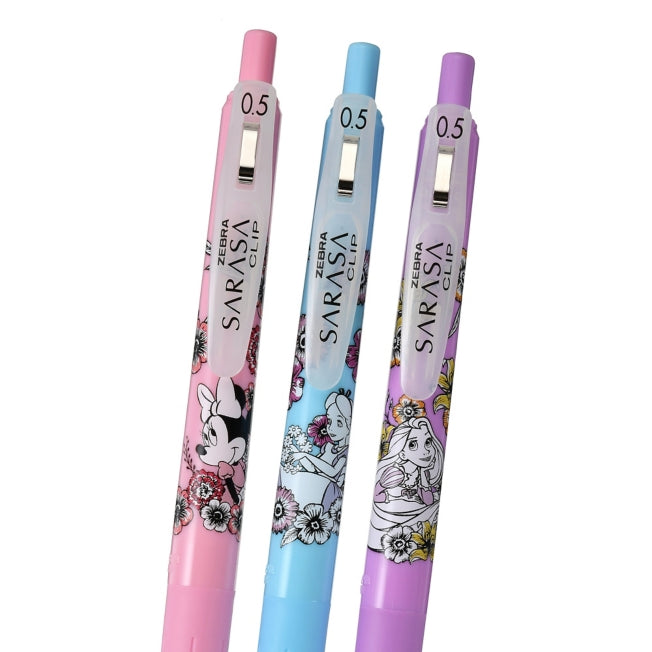 Minnie, Rapunzel, Alice Sarasa Clip 0.5 Gel-Kugelschreiber Set Black & Flower