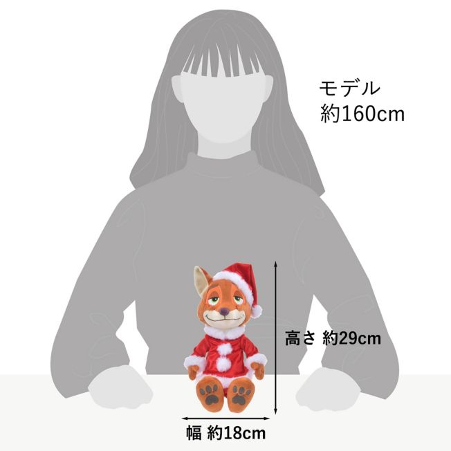 Plüschtier von "Zoomania". Hier ist Nick Wilde im Weihnachtsstil. Nick Wilde, der im Santa Claus-Kostüm herausgeputzt ist, wirkt irgendwie frisch mit seinem roten Samtstoff und dem strahlend weißen Kunstpelz. Auch sein dickflauschiger Schwanz und sein etwas melancholischer Gesichtsausdruck sind originalgetreu nachgebildet. Beachten Sie auch die Pfotenunterseite! Die angemessene Größe macht es einfach, ihn im Raum zu platzieren. In derselben Serie gibt es auch ein Plüschtier von Judy Hopps (separat erhältlich). Wenn Sie sie zusammen aufstellen, wird die fröhliche Weihnachtsstimmung noch mehr steigen! Verbringen Sie eine fröhliche Urlaubssaison mit den Disney-Charakteren