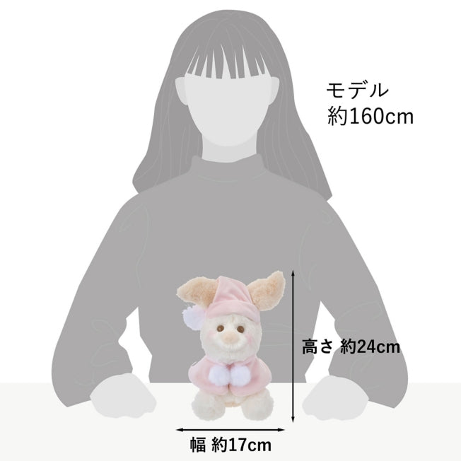 Piglet in Fruchtlattenfarbe. Sitzende Plüschfigur. Sanfte braune Augen, süße rosa gefärbte Wangen machen Piglet so niedlich. Die Konturen des Gesichts, des Hinterns, der Beine usw. sind schön gerundet, weil hochwertige Materialien verwendet werden. Die Textur ist auch weich wie Marshmallow. Das sanfte, cremefarbene Kostüm passt sehr gut zum Körper. Die Pompons an der Fruchtlattenfarbenen Kapuze und Mütze machen die Figur noch liebenswerter. Es gibt auch andere Charaktere (separat erhältlich) in derselben Serie, also unbedingt überprüfen.