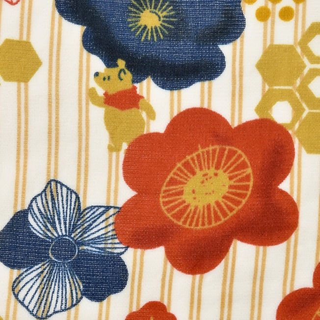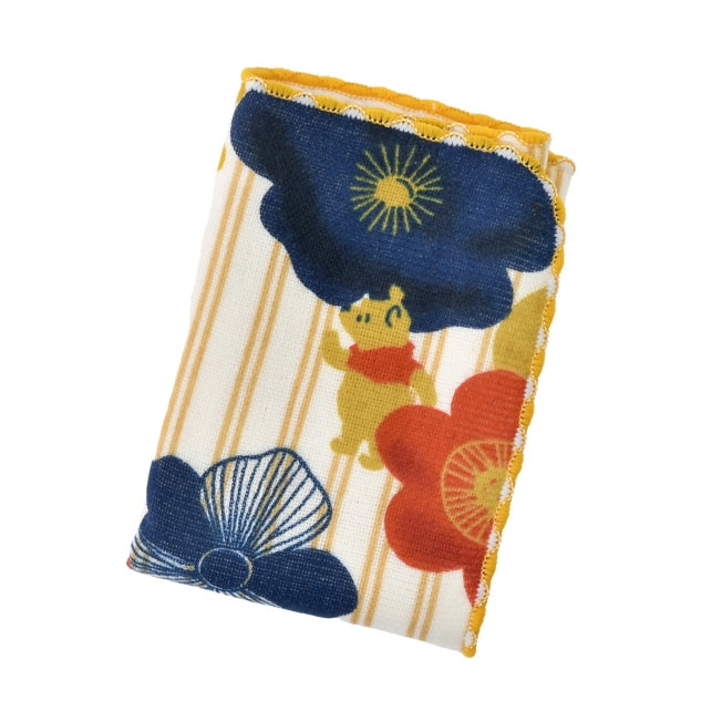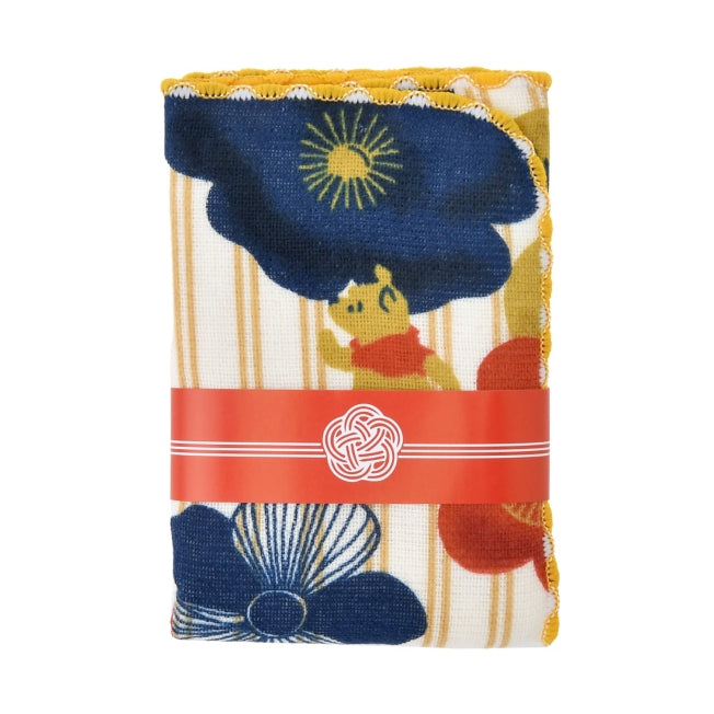 Stilvolles Design im japanischen Modern-Taste. Mini-Handtuch von Winnie the Pooh. Ein Mini-Handtuch mit einem Blumenmuster, das eine japanische Atmosphäre ausstrahlt und mit Charakterillustrationen verziert ist. Die ruhigen Farben und die weiche Textur des Gaze-Materials passen wunderbar zusammen. Ein Mini-Handtuch mit einem Wasserzeichen-Illustration ist enthalten. Ein empfehlenswertes Geschenk für jeden Anlass.
