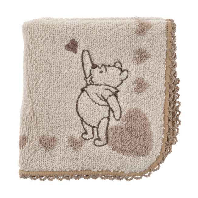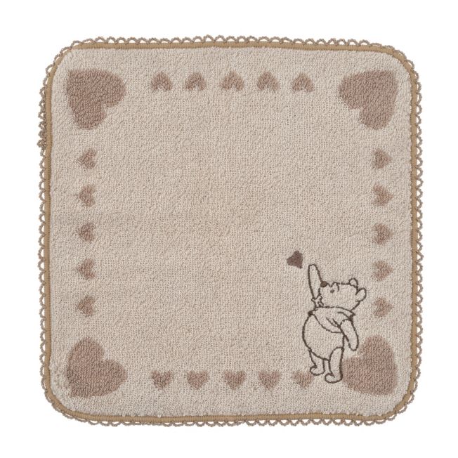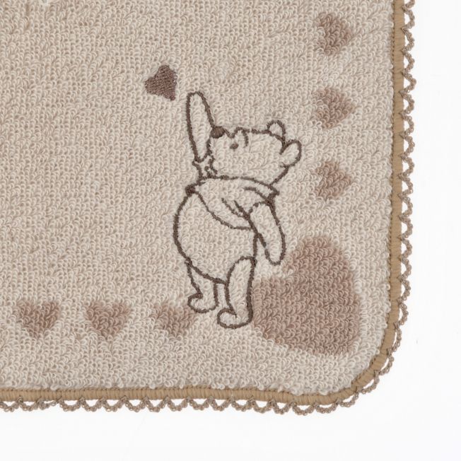 Ein Mini-Handtuch von Winnie the Pooh mit vielen Herzen. Das Mini-Handtuch ist mit einer Stickerei des Charakters versehen, die von kleinen und großen Herzmarken umgeben ist. Die Design-Akzente werden durch die Paspelränder aus Picot-Spitze gesetzt. Das beidseitige Frotteegewebe besteht zu 100% aus Baumwolle und ist daher sehr saugfähig. Ein Artikel, der sich auch als kleines Geschenk sehr gut eignet.