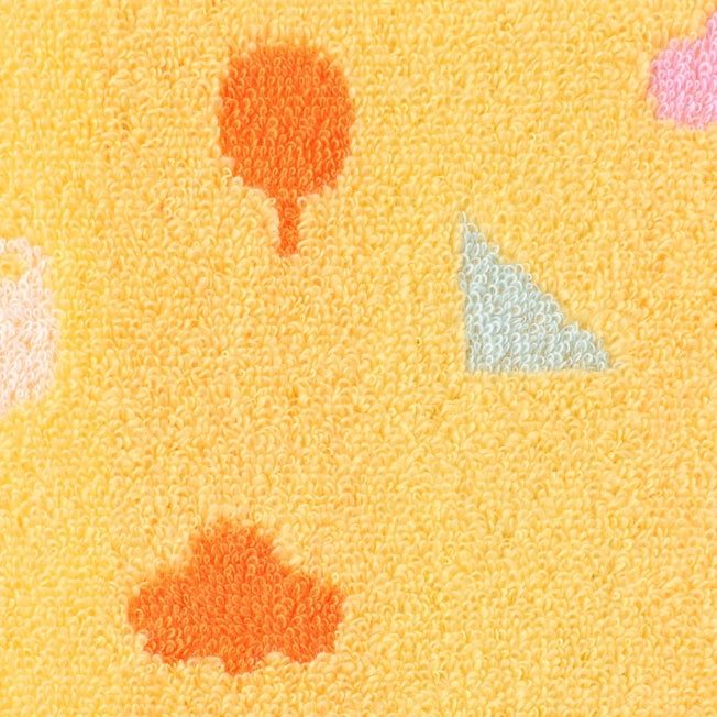 Ein Jacquard-Handtuch mit geometrischen Motiven, die an Spielzeug-Bausteine erinnern und mit den Motiven verschiedener Charaktere verziert sind. Ein besonderes Merkmal sind die unterschiedlichen Designs an den Saumteilen für jeden Charakter. Aufgrund des weichen, flauschigen Garns eignet es sich auch gut als Geschenk zur Geburt oder zur Gratulation.