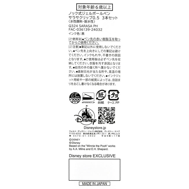 Der "Sarasa Clip" mit einem angenehmen, seidigen Schreibgefühl ist jetzt mit den Designs von Winnie the Pooh, Piglet und Tigger erhältlich. Die sanften Illustrationen sorgen für eine gemütliche Atmosphäre. Es gibt drei verschiedene Designs mit niedlichen Charakteren und Blumen. Ein klassischer schwarzer Gel-Tintenstift, der vielseitig einsetzbar ist, z.B. in Notizbüchern, Tagebüchern oder beim Schreiben von Briefen.