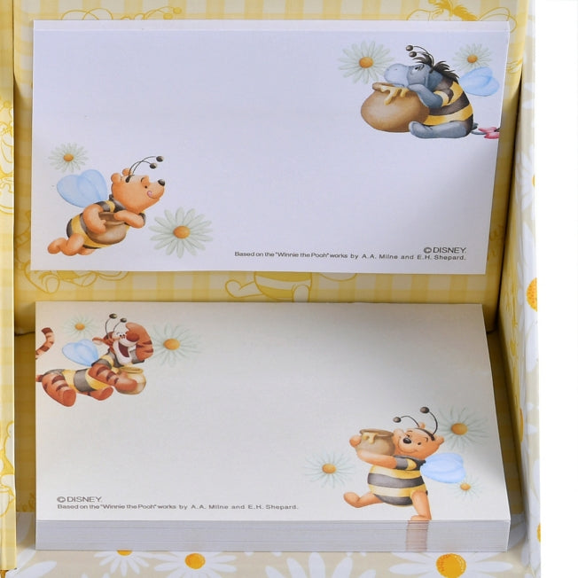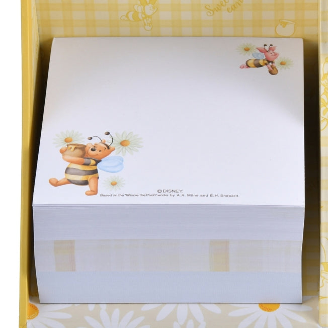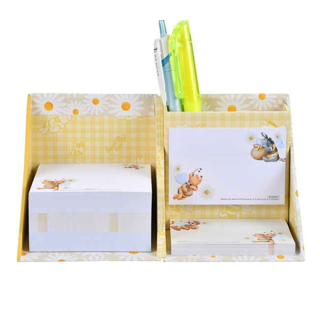 Ein Set aus Notizzetteln, Memos und einem Stifthalter. Das Design von Pooh & Friends mit niedlichem Bienen-Look ist erhältlich. Ein Würfelbehälter mit zwei Arten von Notizzetteln und drei Mustern von Memos. Der Behälter ist schräg geschnitten, so dass er flach aufgestellt werden kann und eine praktische Notizfläche entsteht. Mit Stifthalter, um auch Telefonate im Büro reibungslos zu erledigen. Die Würfelform ist niedlich und voluminös, daher auch als Geschenk zu empfehlen.