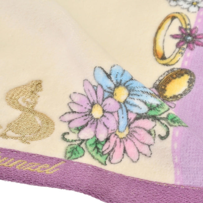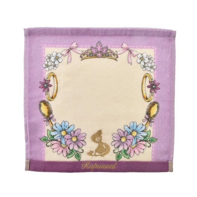 Elegantes Mini-Handtuch von Disney Princess Rapunzel. Romantisches Design mit Motiven wie Tiara, Ringen und schönen Blumen. Das Charakter-Silhouetten-Glitzerstickerei verleiht dem Handtuch eine festliche Note. Das Handtuch aus angenehmem Baumwollmaterial hat eine weiche Haptik. Ein beliebtes Geschenk für jeden Anlass.