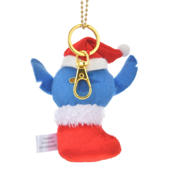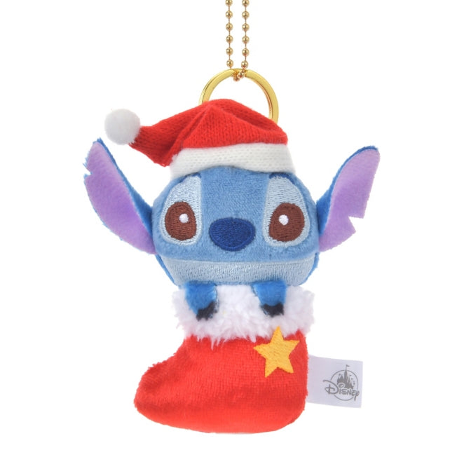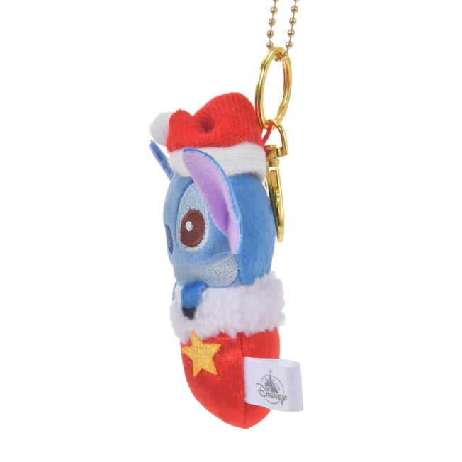 Weihnachtsdesign von Stitch. Handflächengroßer Plüsch-Schlüsselanhänger. Stitch schaut aus einem roten Strumpf heraus und hat ein sehr niedliches Design. Aufgrund der schlanken Form ist er leicht zu transportieren und dient als saisonale Akzent an Ihrer Tasche oder Ihrem Schlüssel. Auch zum Schmücken des Baumes wie ein Ornament geeignet. Verbringen Sie eine wundervolle Urlaubssaison mit Ihrem Lieblingscharakter.