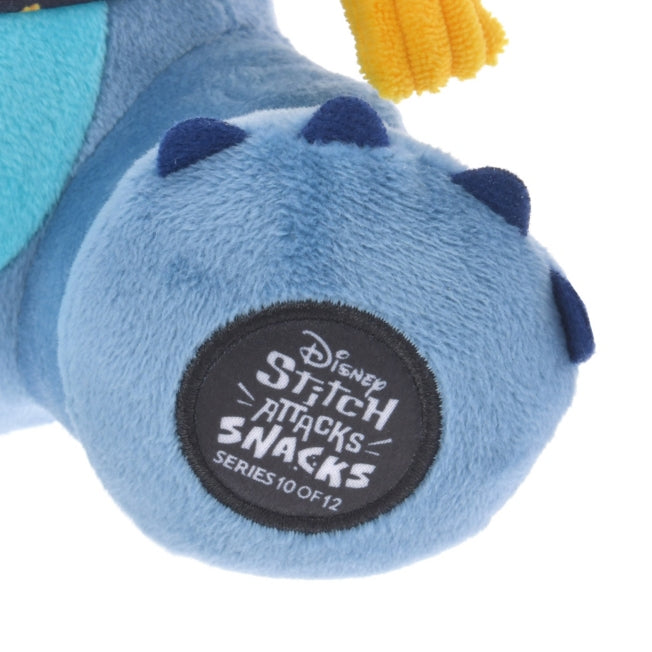 Plüschfigur von Stitch im Churro-Motiv. Stitch ist glücklich, seinen geliebten Churro zu halten. Das Churro-Paket ist mit einem Micky-Maus-Icon bedruckt. Perfekt kombinierbar mit einem Shirt, auf dem Churros und Micky-Maus-Icons gedruckt sind! Beachten Sie auch das Logo auf der Fußsohle. Ein tolles, einzigartiges Produkt, das Sie unbedingt haben sollten!
