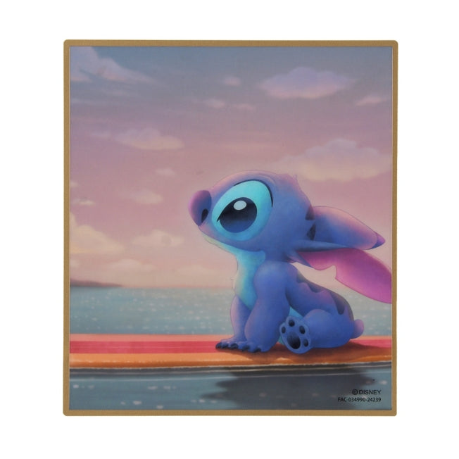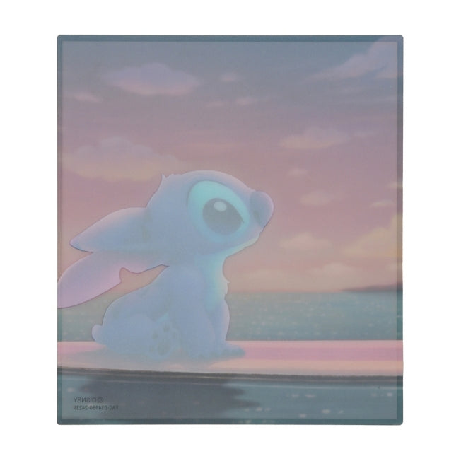 Farbige Karte aus klarem Material mit einem Aufdruck von Stitch, in kleiner Größe. Die klare Materialstruktur mit goldfarbenem Rand an allen Seiten verleiht der Karte eine schöne Transparenz. Es zeigt eine emotionale Szene, in der Stitch auf einem Surfbrett sitzt und den Sonnenuntergang betrachtet. Perfekt zum Signieren als Karte, zum Hinzufügen einer Nachricht als Geschenk oder einfach als Dekorationsobjekt! Kann auch zusammen mit einem Acryl-Ständer oder als Teil einer Landschaft fotografiert werden. Es gibt auch Karten mit anderen Charakteren (separat erhältlich), also wählen Sie Ihr Lieblingsdesign!