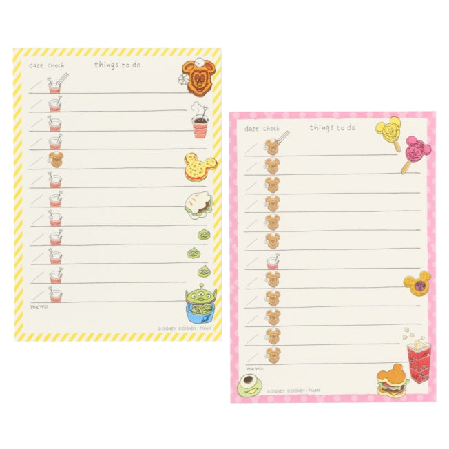 Dies ist ein handgezeichneter Notizblock mit vielen Parkmenüs. Die Notizen sind als TO DO LIST gestaltet und in zwei Designs erhältlich: Gelb und Pink. Sie können das Datum und die Aufgaben klar und deutlich notieren, sodass sie in verschiedenen Szenarien wie zu Hause, im Büro, in der Schule usw. vielseitig einsetzbar sind. Wenn Sie eine Aufgabe erledigt haben, können Sie sie auf der Rückseite wie im Beispiel ausfüllen, indem Sie den Kaffeeteil ausmalen oder etwas hinzufügen, um es wie Schokolade auf einem Waffel aussehen zu lassen! Das verspielte Design ist das Highlight.
