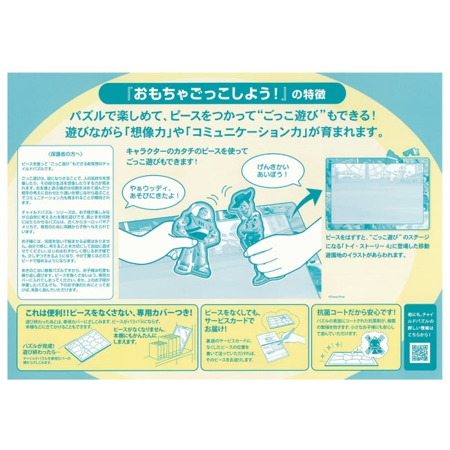 Puzzles sind der König der pädagogischen Spielzeuge! "Kinderpuzzle" fördert die Intelligenz und das reiche Herz Ihres Kindes! Während sie Spaß haben, entwickeln sie Intuition für Formen, Farbsensibilität, Fingerfertigkeit und mehr. Außerdem kann diese Serie von Puzzles auch auf eine andere Art und Weise gespielt werden! Wenn Sie die Teile entfernen, erscheint der mobile Vergnügungspark aus "Toy Story 4" als Bühne, und Sie können auch Rollenspiele mit den Charakterteilen von Toy Story spielen! Altersgruppe: 4 Jahre und älter